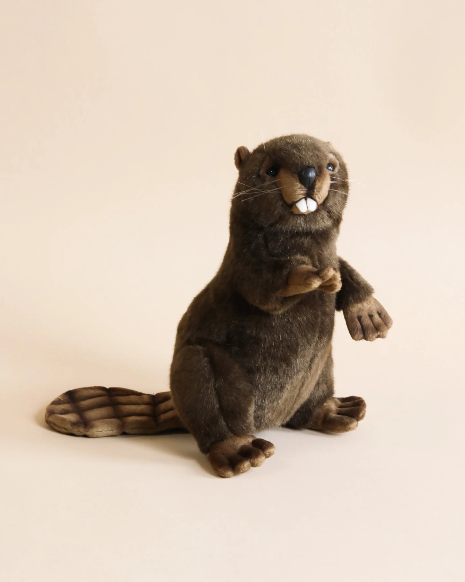 Artisans hand sew the animals “inside out”, an old world tradition that results in the mininization of seams, and their bodies are carefully “sculpted” to create “musculature” and “features” like movement in a walking or sitting position that are unique to each creature. On average, there are 42 separate pieces required to make each animal, that must be combined by a team of truly creative artists to create the distinctly realistic features that characterize HANSA animals. (Some animals have as many as 240 different parts!) Each animal is individually hand sewn, to give it a unique “personality”, there are more than 860 different fabrics and man-made furs from which the “coat” and “hides” are made, along with over 6000 sets of different eyes, whiskers, claws, noses, and related accessories allocated for creating these wonderful plush animals. Stuffing emphasizes careful attention to the placement of the highest quality man-made materials.