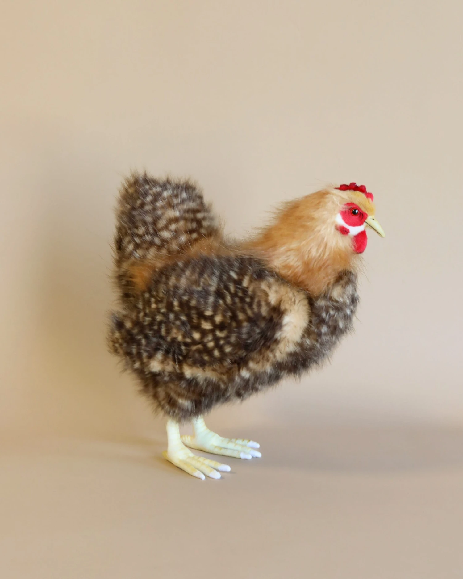 Artisans hand sew the animals “inside out”, an old world tradition that results in the mininization of seams, and their bodies are carefully “sculpted” to create “musculature” and “features” like movement in a walking or sitting position that are unique to each creature. On average, there are 42 separate pieces required to make each animal, that must be combined by a team of truly creative artists to create the distinctly realistic features that characterize HANSA animals. (Some animals have as many as 240 different parts!) Each animal is individually hand sewn, to give it a unique “personality”, there are more than 860 different fabrics and man-made furs from which the “coat” and “hides” are made, along with over 6000 sets of different eyes, whiskers, claws, noses, and related accessories allocated for creating these wonderful plush animals. Stuffing emphasizes careful attention to the placement of the highest quality man-made materials.
