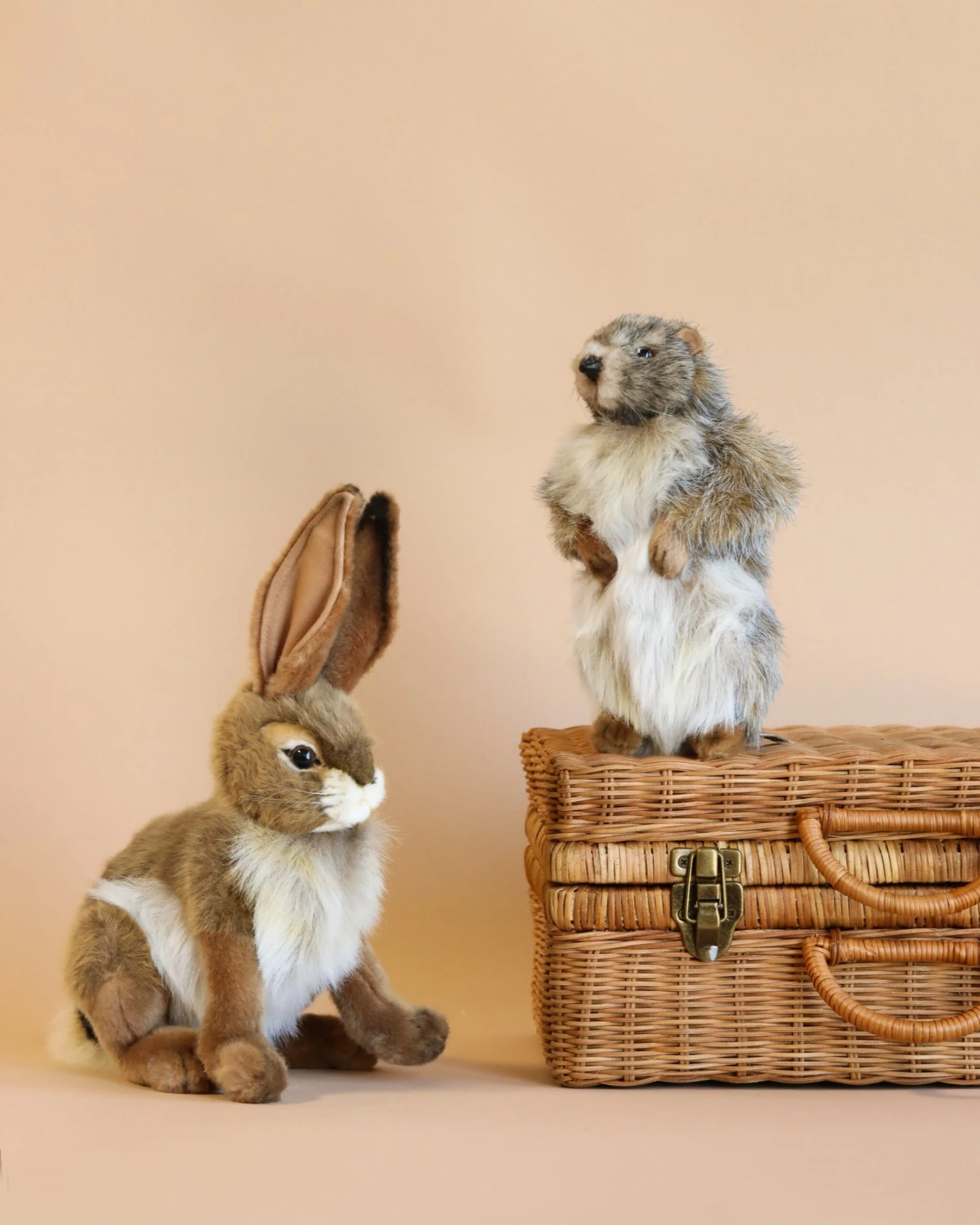 Artisans hand sew the animals “inside out”, an old world tradition that results in the mininization of seams, and their bodies are carefully “sculpted” to create “musculature” and “features” like movement in a walking or sitting position that are unique to each creature. On average, there are 42 separate pieces required to make each animal, that must be combined by a team of truly creative artists to create the distinctly realistic features that characterize HANSA animals. (Some animals have as many as 240 different parts!) Each animal is individually hand sewn, to give it a unique “personality”, there are more than 860 different fabrics and man-made furs from which the “coat” and “hides” are made, along with over 6000 sets of different eyes, whiskers, claws, noses, and related accessories allocated for creating these wonderful plush animals. Stuffing emphasizes careful attention to the placement of the highest quality man-made materials.