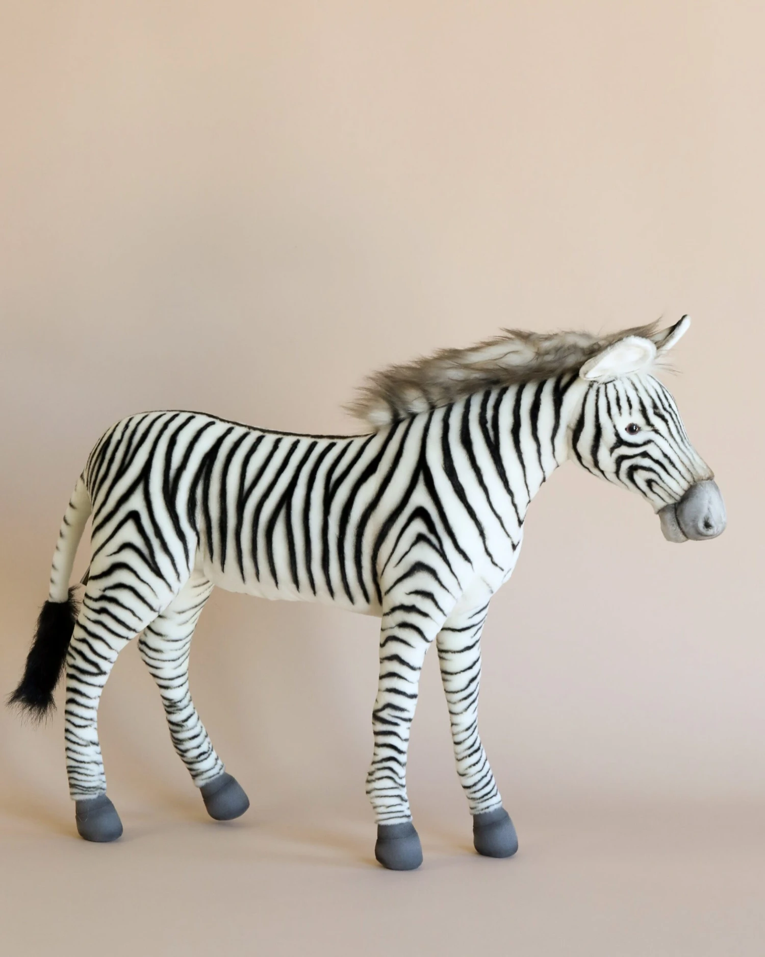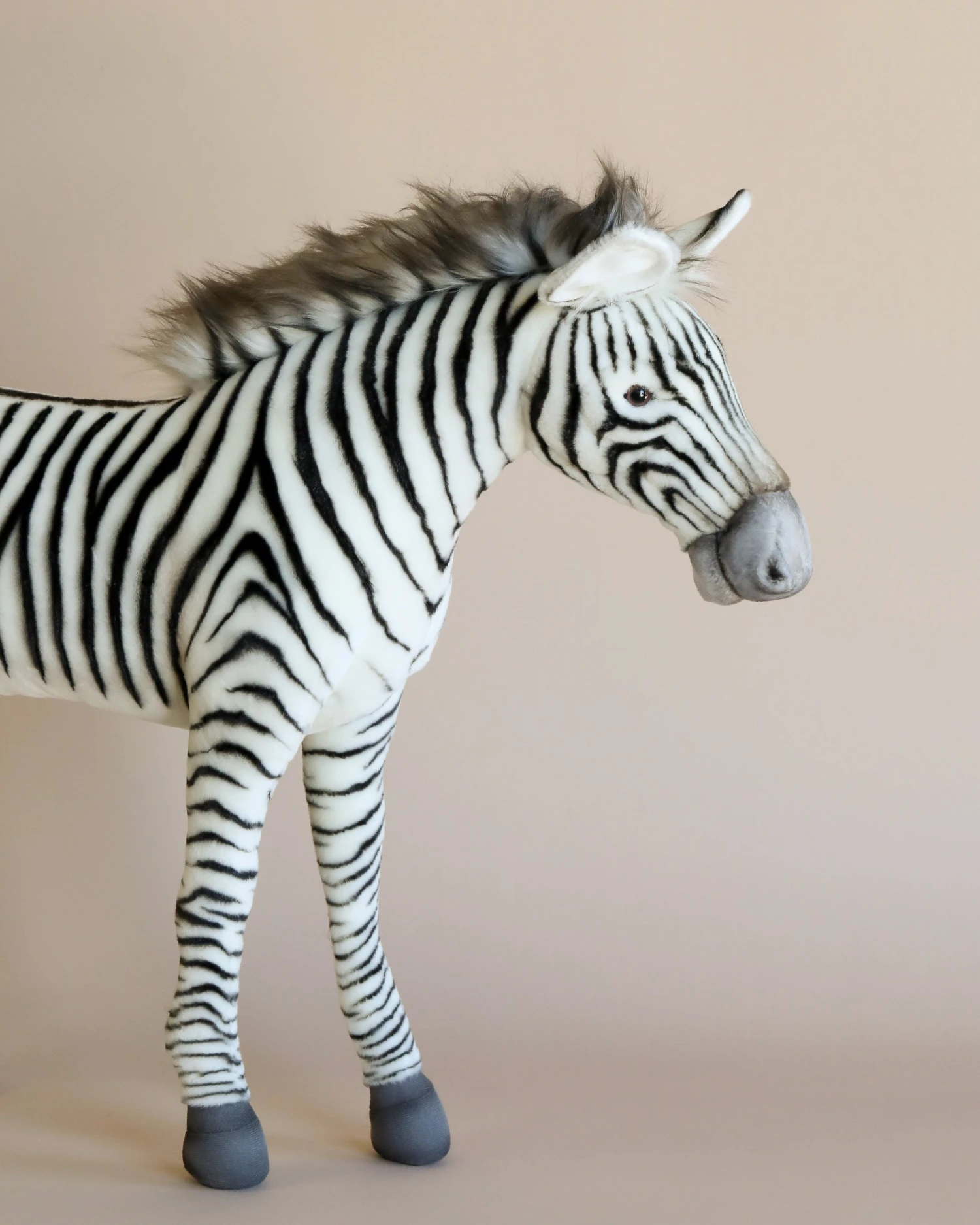 Artisans hand sew the animals “inside out”, an old world tradition that results in the mininization of seams, and their bodies are carefully “sculpted” to create “musculature” and “features” like movement in a walking or sitting position that are unique to each creature. On average, there are 42 separate pieces required to make each animal, that must be combined by a team of truly creative artists to create the distinctly realistic features that characterize HANSA animals. (Some animals have as many as 240 different parts!) Each animal is individually hand sewn, to give it a unique “personality”, there are more than 860 different fabrics and man-made furs from which the “coat” and “hides” are made, along with over 6000 sets of different eyes, whiskers, claws, noses, and related accessories allocated for creating these wonderful plush animals. Stuffing emphasizes careful attention to the placement of the highest quality man-made materials.