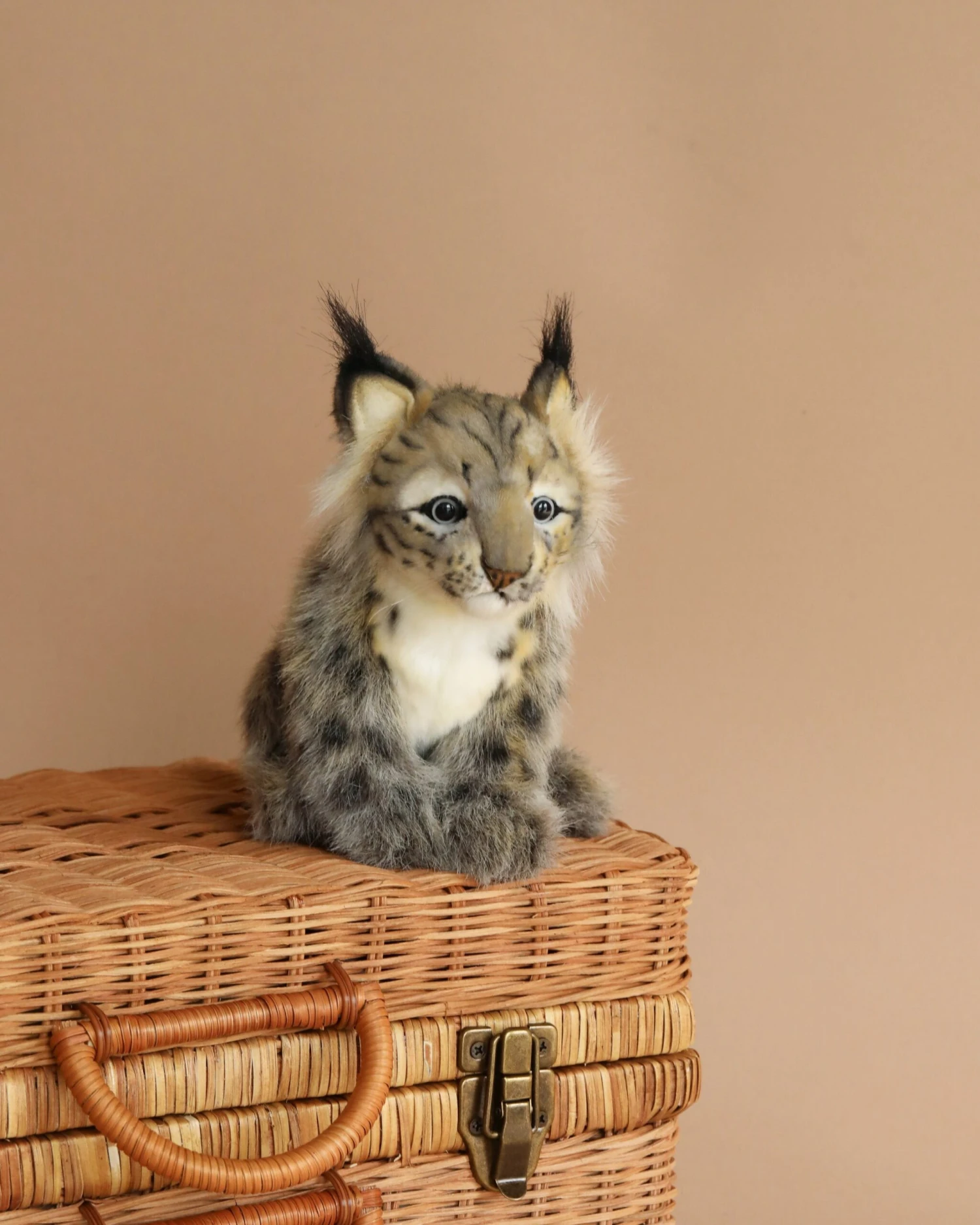 Artisan hand sew the animals “inside out”, an old world tradition that results in the mininization of seams, and their bodies are carefully “sculpted” to create “musculature” and “features” like movement in a walking or sitting position that are unique to each creature. On average, there are 42 separate pieces required to make each animal, that must be combined by a team of truly creative artists to create the distinctly realistic features that characterize HANSA animals. (Some animals have as many as 240 different parts!) Each animal is individually hand sewn, to give it a unique “personality”, there are more than 860 different fabrics and man-made furs from which the “coat” and “hides” are made, along with over 6000 sets of different eyes, whiskers, claws, noses, and related accessories allocated for creating these wonderful plush animals. Stuffing emphasizes careful attention to the placement of the highest quality man-made materials.