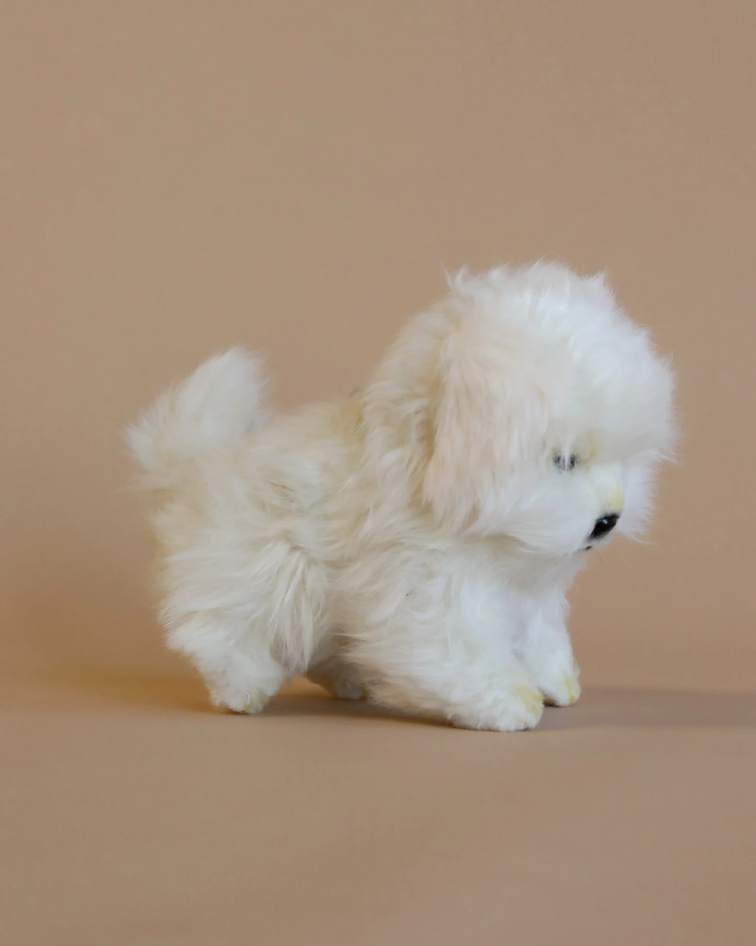 Artisans hand sew the animals “inside out”, an old world tradition that results in the mininization of seams, and their bodies are carefully “sculpted” to create “musculature” and “features” like movement in a walking or sitting position that are unique to each creature. On average, there are 42 separate pieces required to make each animal, that must be combined by a team of truly creative artists to create the distinctly realistic features that characterize HANSA animals. (Some animals have as many as 240 different parts!) Each animal is individually hand sewn, to give it a unique “personality”, there are more than 860 different fabrics and man-made furs from which the “coat” and “hides” are made, along with over 6000 sets of different eyes, whiskers, claws, noses, and related accessories allocated for creating these wonderful plush animals. Stuffing emphasizes careful attention to the placement of the highest quality man-made materials.