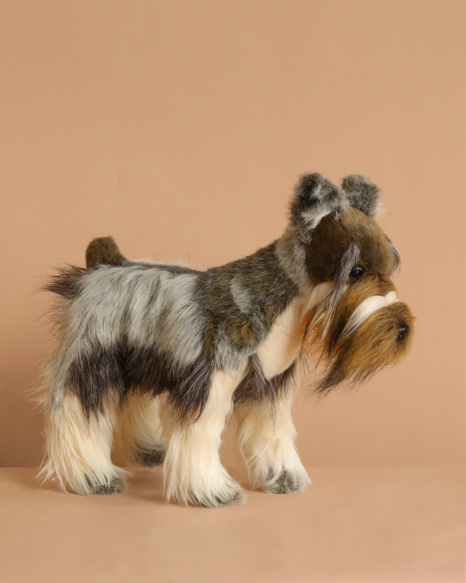 Artisan hand sew the animals “inside out”, an old world tradition that results in the mininization of seams, and their bodies are carefully “sculpted” to create “musculature” and “features” like movement in a walking or sitting position that are unique to each creature. On average, there are 42 separate pieces required to make each animal, that must be combined by a team of truly creative artists to create the distinctly realistic features that characterize HANSA animals. (Some animals have as many as 240 different parts!) Each animal is individually hand sewn, to give it a unique “personality”, there are more than 860 different fabrics and man-made furs from which the “coat” and “hides” are made, along with over 6000 sets of different eyes, whiskers, claws, noses, and related accessories allocated for creating these wonderful plush animals. Stuffing emphasizes careful attention to the placement of the highest quality man-made materials.