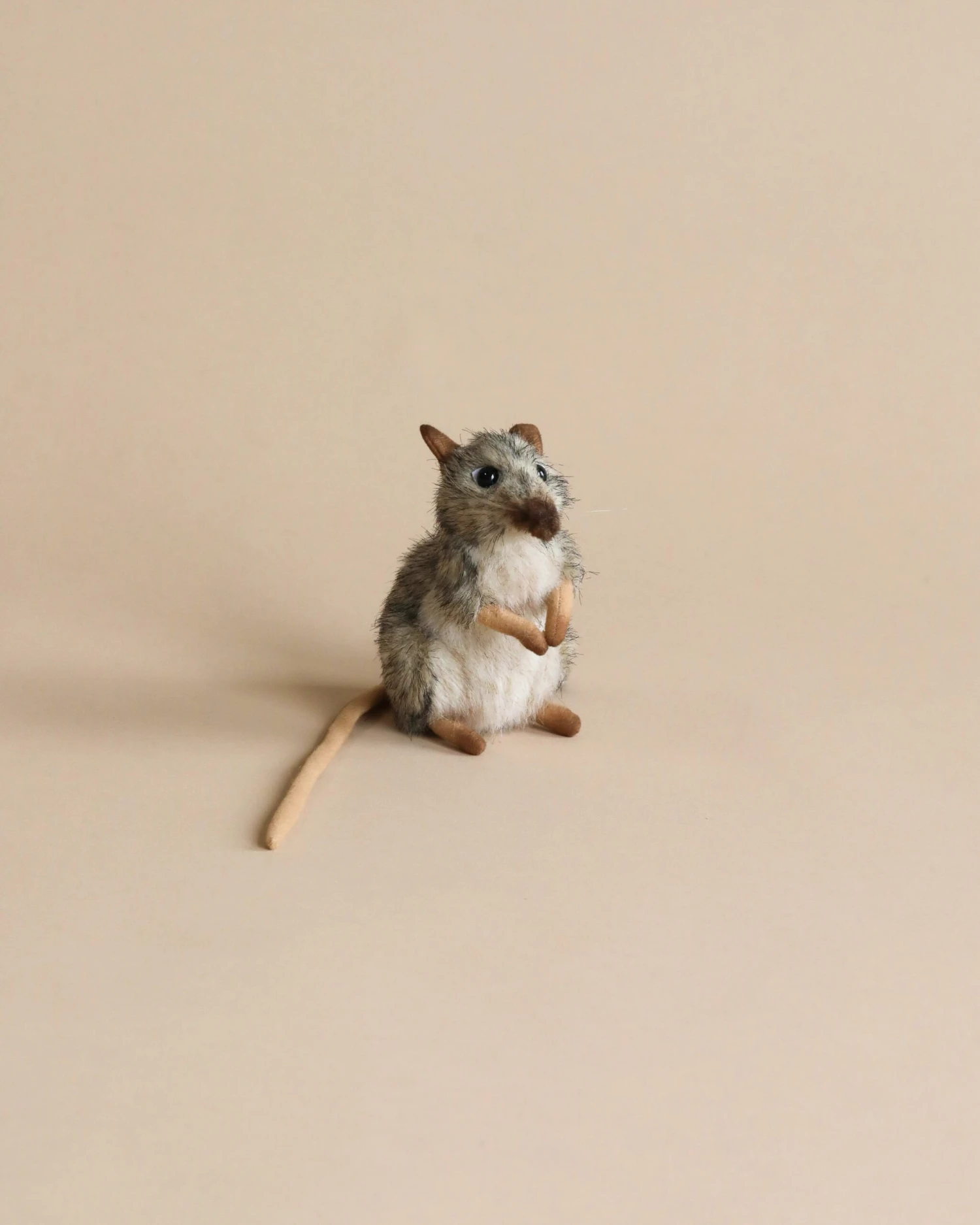 Artisan hand sew the animals “inside out”, an old world tradition that results in the mininization of seams, and their bodies are carefully “sculpted” to create “musculature” and “features” like movement in a walking or sitting position that are unique to each creature. On average, there are 42 separate pieces required to make each animal, that must be combined by a team of truly creative artists to create the distinctly realistic features that characterize HANSA animals. (Some animals have as many as 240 different parts!) Each animal is individually hand sewn, to give it a unique “personality”, there are more than 860 different fabrics and man-made furs from which the “coat” and “hides” are made, along with over 6000 sets of different eyes, whiskers, claws, noses, and related accessories allocated for creating these wonderful plush animals. Stuffing emphasizes careful attention to the placement of the highest quality man-made materials.