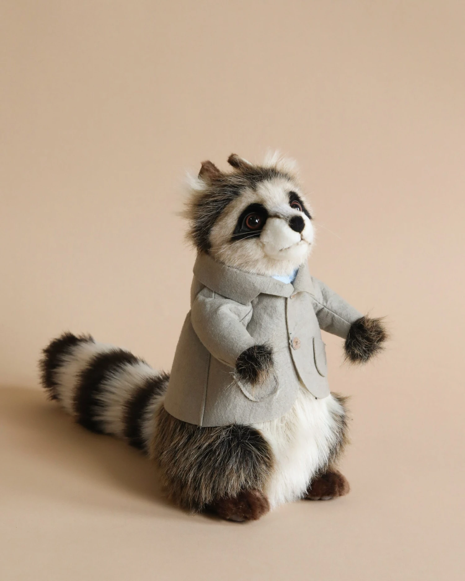 Artisans hand sew the animals “inside out”, an old world tradition that results in the mininization of seams, and their bodies are carefully “sculpted” to create “musculature” and “features” like movement in a walking or sitting position that are unique to each creature. On average, there are 42 separate pieces required to make each animal, that must be combined by a team of truly creative artists to create the distinctly realistic features that characterize HANSA animals. (Some animals have as many as 240 different parts!) Each animal is individually hand sewn, to give it a unique “personality”, there are more than 860 different fabrics and man-made furs from which the “coat” and “hides” are made, along with over 6000 sets of different eyes, whiskers, claws, noses, and related accessories allocated for creating these wonderful plush animals. Stuffing emphasizes careful attention to the placement of the highest quality man-made materials.