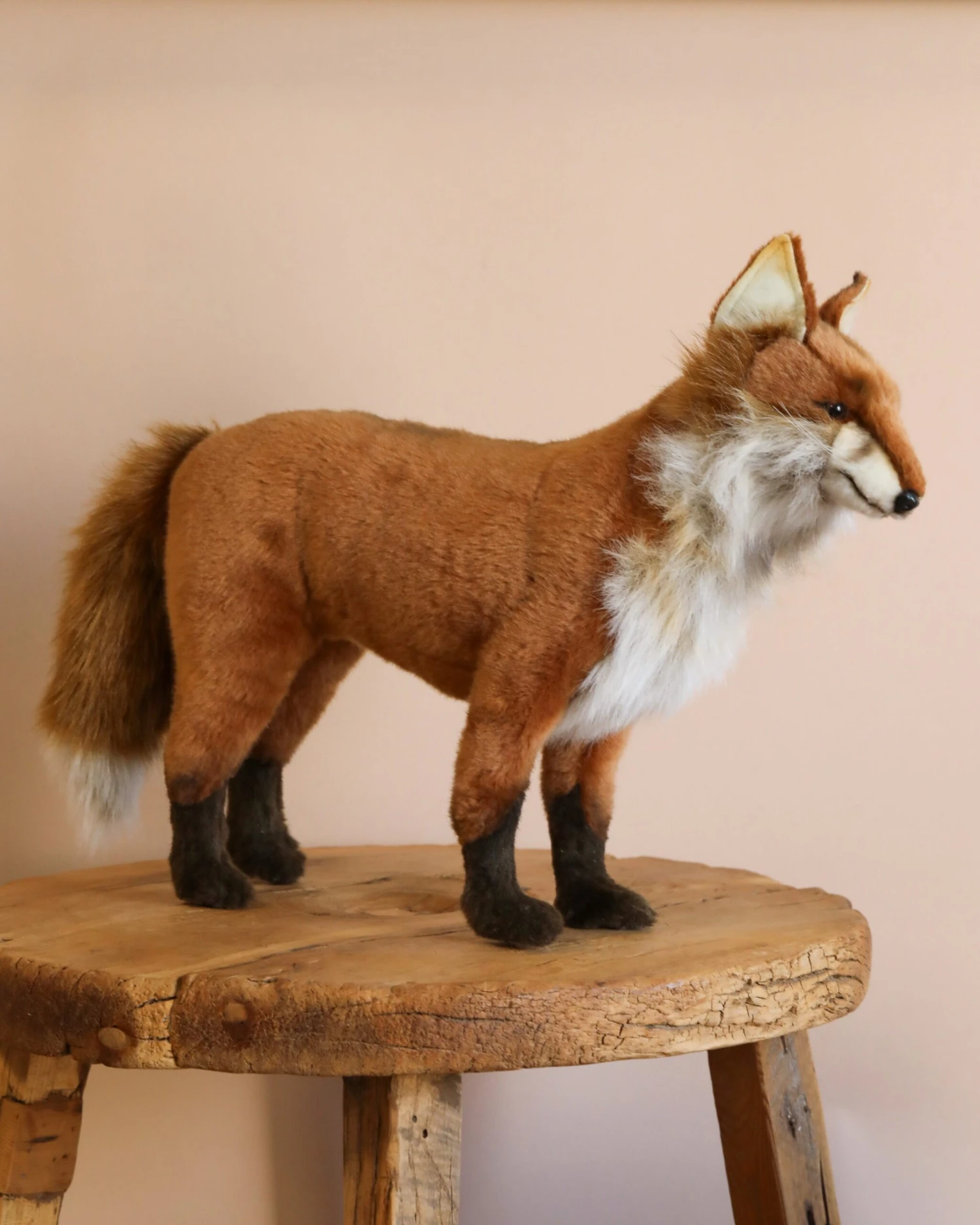 Artisan hand sew the animals “inside out”, an old world tradition that results in the mininization of seams, and their bodies are carefully “sculpted” to create “musculature” and “features” like movement in a walking or sitting position that are unique to each creature. On average, there are 42 separate pieces required to make each animal, that must be combined by a team of truly creative artists to create the distinctly realistic features that characterize HANSA animals. (Some animals have as many as 240 different parts!) Each animal is individually hand sewn, to give it a unique “personality”, there are more than 860 different fabrics and man-made furs from which the “coat” and “hides” are made, along with over 6000 sets of different eyes, whiskers, claws, noses, and related accessories allocated for creating these wonderful plush animals. Stuffing emphasizes careful attention to the placement of the highest quality man-made materials.